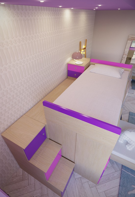 Παιδική κουκέτα από μελαμίνη με γραφείο εξαιρετικά λειτουργική για κάθε παιδικό υπνοδωμάτιο, μπορεί να φιλοξενήσει κορίτσια και αγόρια. Έχει σκαλοπάτια που είναι αποθηκευτικοί χώροι, συρτάρια και προστατευτικό κάγκελο για ασφάλεια.