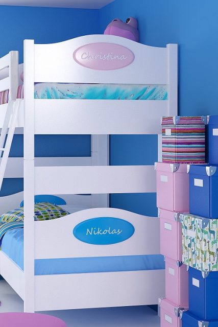 Μια ξεχωριστή παιδική κουκέτα! Προσφέρει τη δυνατότητα να αποσπαστεί και να γίνει δύο μονά κρεβάτια, αλλά και την αναγραφή του ονόματος του παιδιού που θα φιλοξενηθεί καθημερινά στο κάθε κρεβάτι στο κεφαλάρι του κρεβατιού! Με μεταλλική σκάλα και προστατευτικό κάγκελο για ασφάλεια.